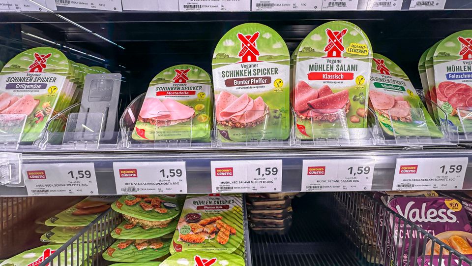 Fleischersatzprodukte im Supermarktregal