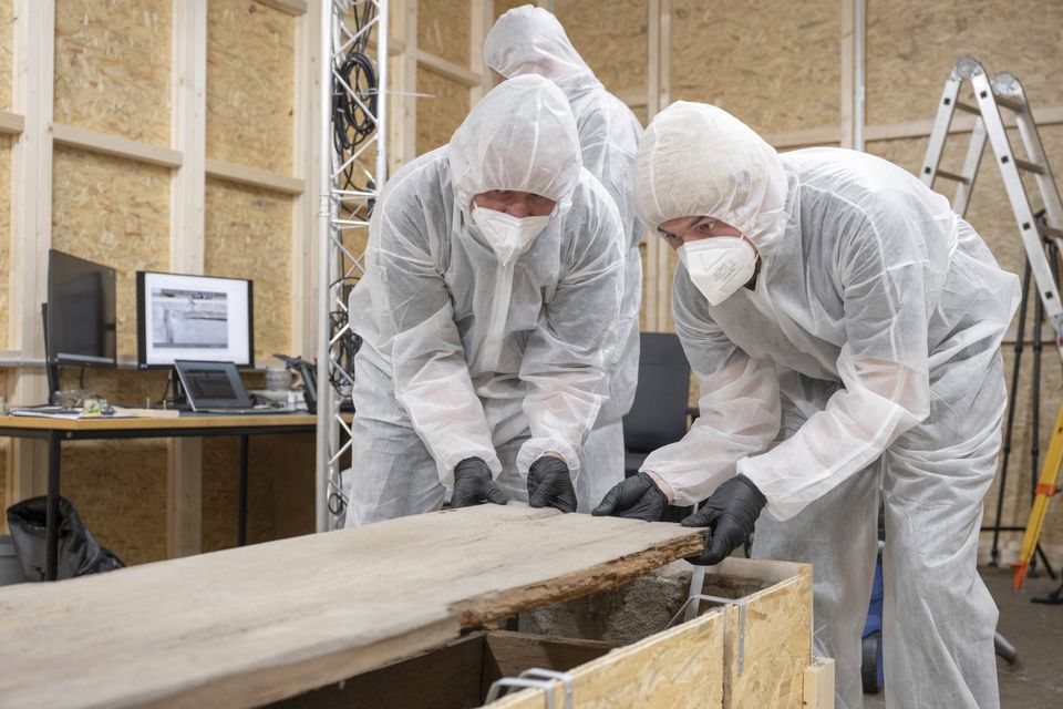 Expertenteam in Schutzkleidung hebt den Sargdeckel von Otto dem Großen: Der Herrscher gilt als Begründer des Heiligen Römischen Reichs