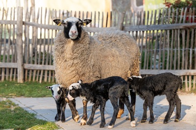 Kurz vor den Osterfeiertagen hat sich in der Wilhelma erneut tierischer Nachwuchs eingestellt: Bei den Romanovschafen sind Drillinge zur Welt gekommen. Besucherinnen und Besucher des Zoologisch-Botanischen Gartens bietet sich damit die Gelegenheit,zu beobachten,wie das muntere Trio seine Anlage im Bereich des Asiatischen Schaubauernhofs neugierig erkundet. Die Lämmer fallen durch ihr dichtes,zunächst schwarz gefärbtes Vlies auf. Sie unterscheiden sich voneinander durch die individuell verschiedenen weißen Partien im Bereich von Kopf,Hals und teilweise auch den Füßen.