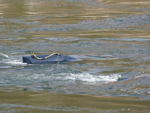 Schwimmkörper der Turbine eines Schwarmkraftwerkes in St. Goar: Ausbeute geringer als bei herkömmlichen Wasserkraftwerken